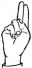 На ћирилици написано МОМИРА ОБРАДОВИЋ састоји се из 15 слова [?]. Исписано ћириличном једноручном азбуком за глувонеме:
